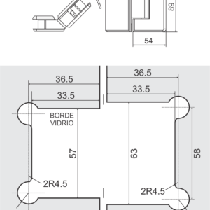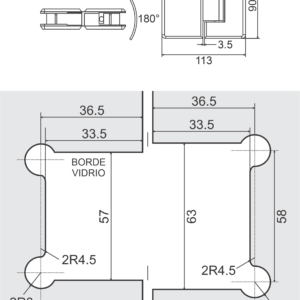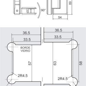 Bisagra cristal a cristal 90°