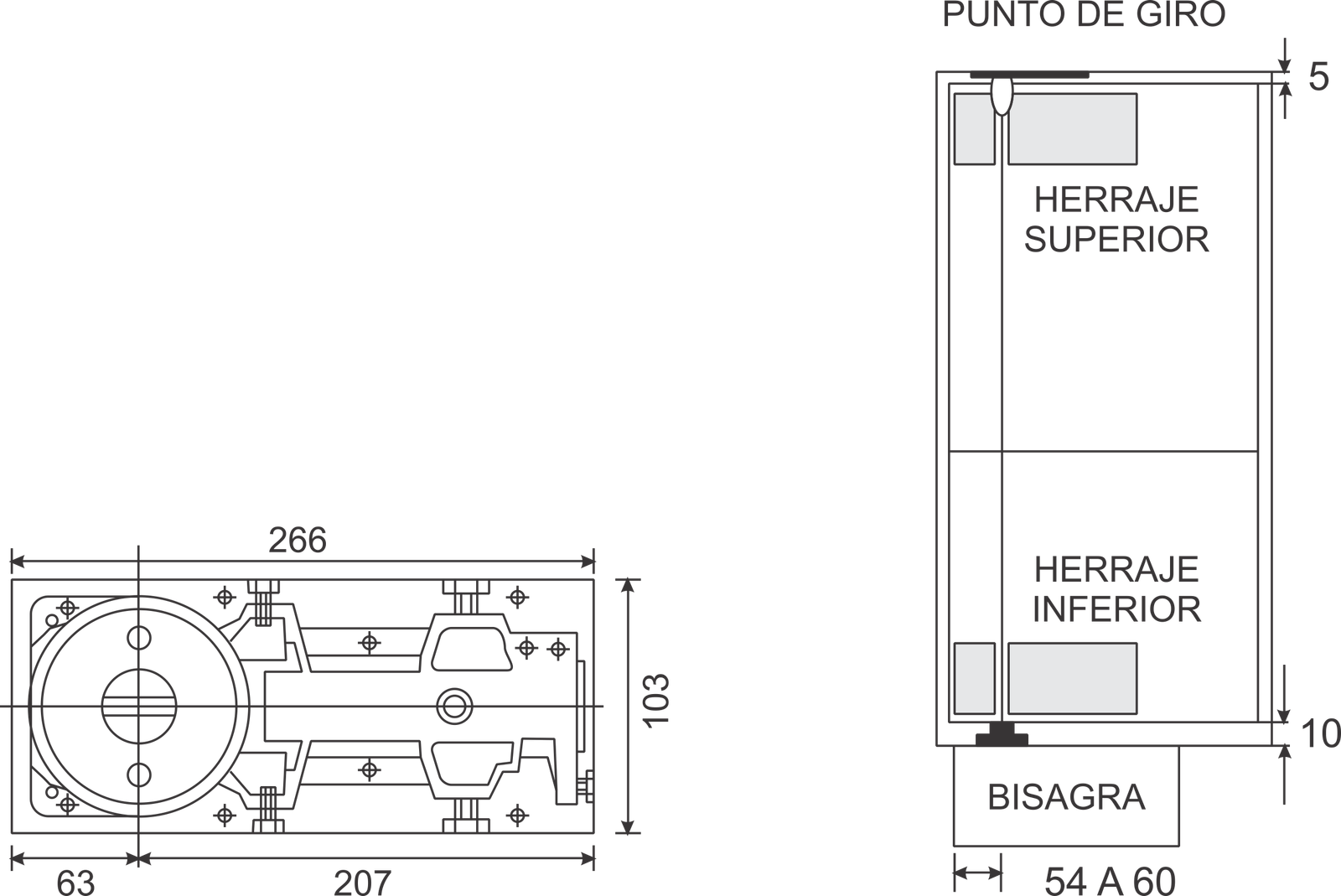 Bisagra hidráulica de piso entrada rectangular