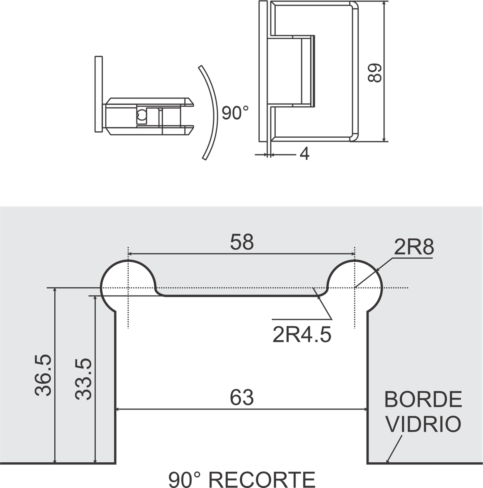 / Bisagra muro a cristal desfasada