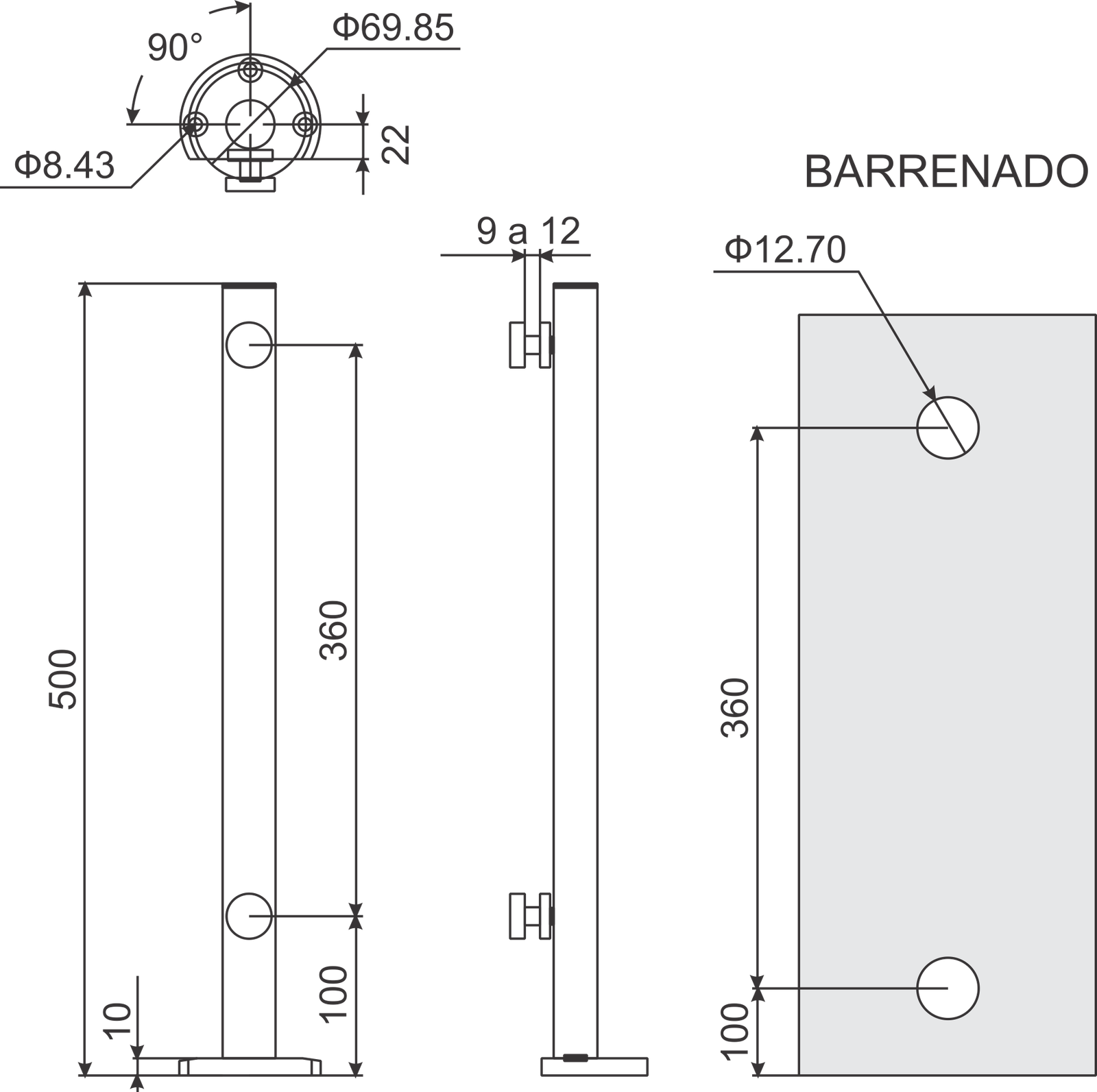 50 cm para 8-12 mm diámetro 1 1/4″ material acero inox 304 acabado satin